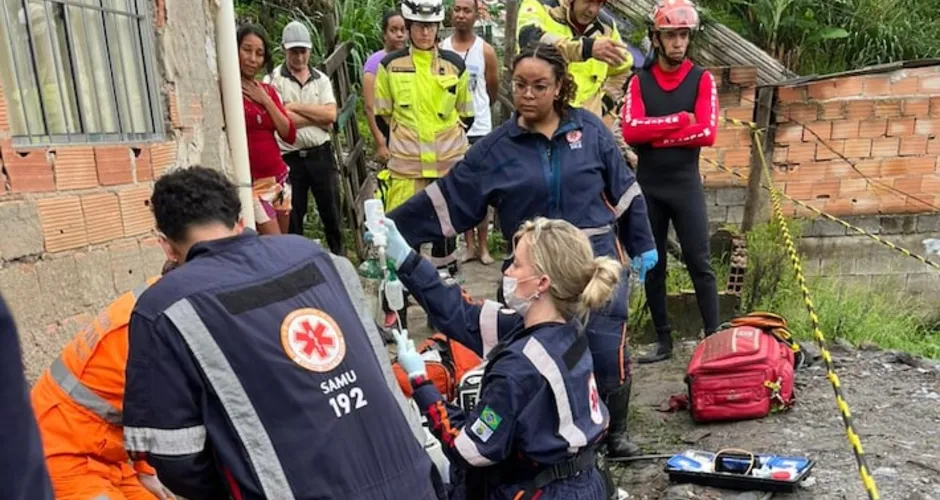 Menino de 5 anos teve parada cardiorrespiratória após ficar soterrado em Sabará (MG) Foto: Corpo de Bombeiros/Divulgação