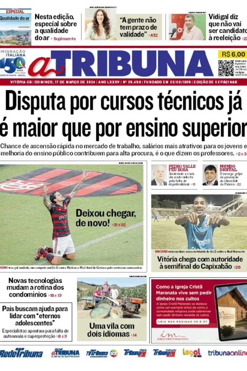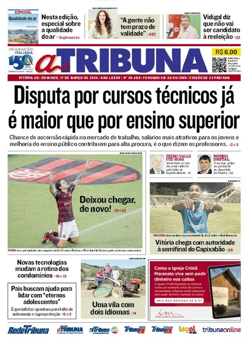 A edição do jornal A Tribuna deste domingo, dia 17 de março, traz em destaque que a disputa por cursos técnicos já é maior que por ensino superior.