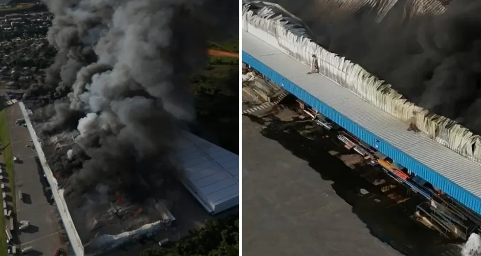 Fogo atingiu dois galpões de um centro logístico |  Foto: Reprodução de vídeo/Marlon Justino