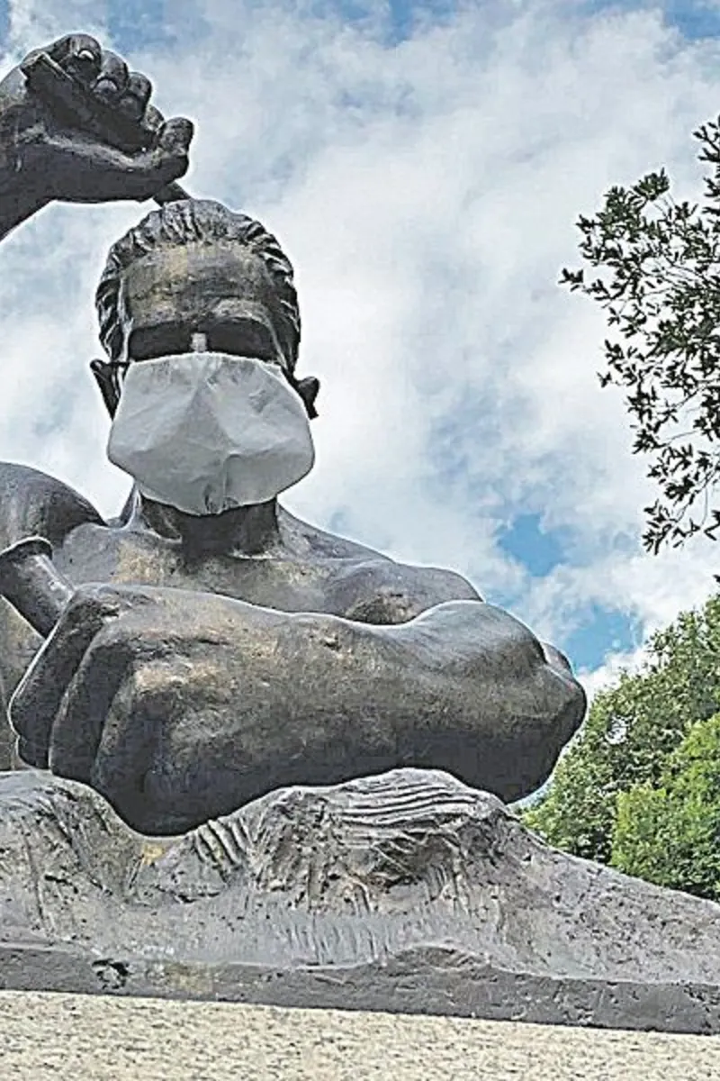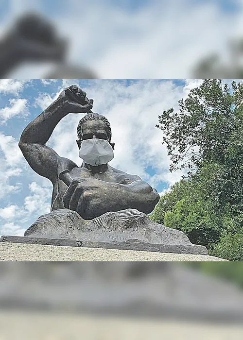 Quando as máscaras caem... Ninguém vai poder culpar as estátuas, como esta da Praça Ubaldo Ramalhete, em Vitória, de descartar máscaras usadas em lugares públicos, conforme vem sendo registrado, ampliando o risco de contaminação.