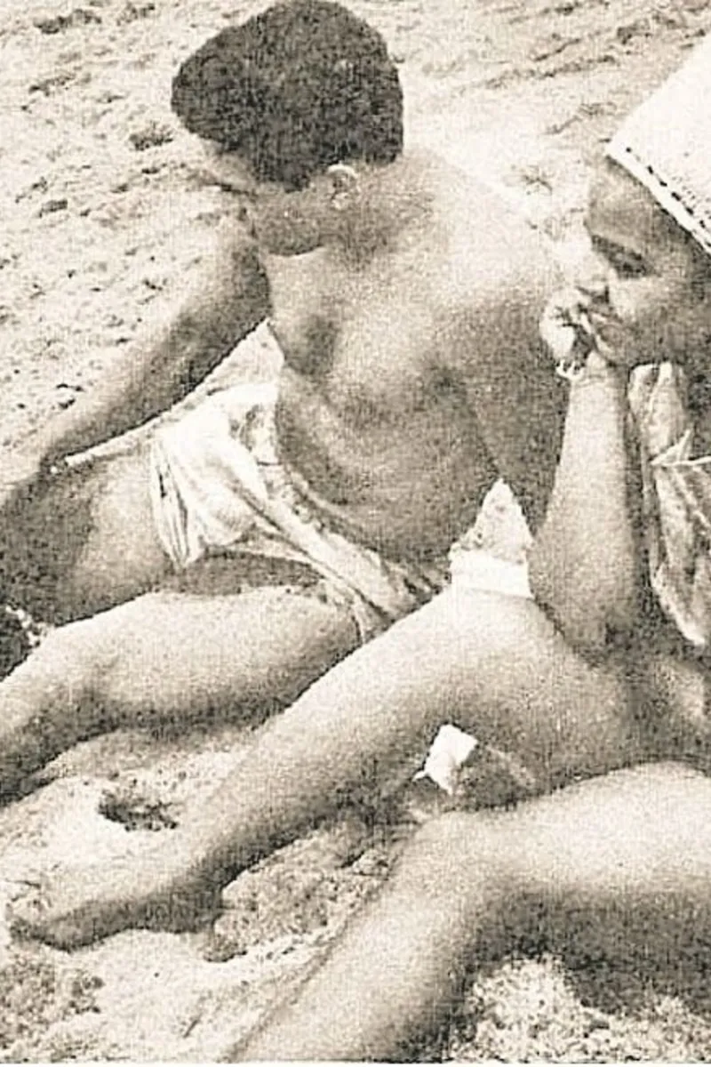 ATRAÍDOS PELA MONAZÍTICA. Neste flagrante de 1963, a cantora Elza Soares e Mané Garrincha, então bicampeão mundial de futebol, passaram alguns dias em Guarapari, nas areias indicadas como terapia para a artrose no joelho do craque. De lá para cá, muita polêmica sobre possíveis males da radiação em contraponto aos benefícios. Agora, pesquisadores da Ufes e da USP publicaram artigo na revista internacional Journal of Radiation Biology, que rebate a tese da radiação nociva. E num próximo artigo, a ser publicado até início de 2021, vão apontar os benefícios da monazítica no tratamento de dores reumáticas.