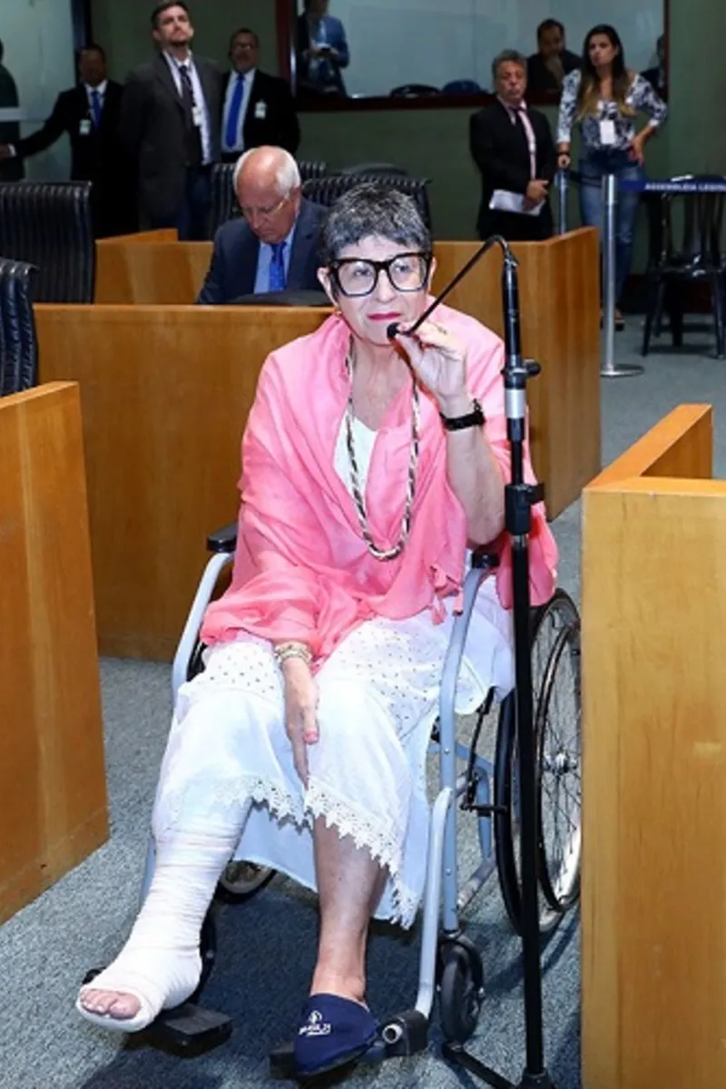 A deputada estadual Iriny Lopes (PT) quebrou a perna direita ao cair, na manhã desta segunda-feira (27), em sua casa. Segundo a deputada, que chegou ontem à Assembleia com a perna engessada e numa cadeira de rodas, ela passou mal, tropeçou e caiu.