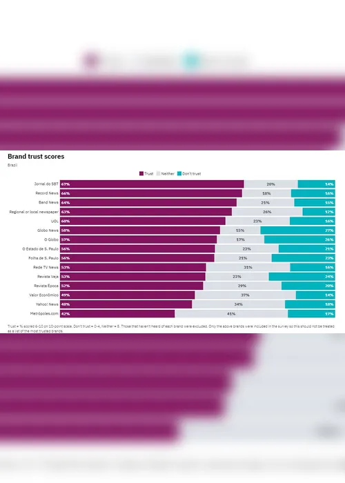 A pesquisa, que foi conduzida pela YouGov (e seus parceiros) por meio de um questionário online no final de janeiro / início de fevereiro de 2021, mostra que as marcas de TV tendem a ser mais confiáveis, juntamente com os jornais locais e regionais, em detrimento das notícias publicadas nas redes sociais. De acordo com o site do Instituto Reuters, “as amostras foram reunidas usando cotas nacionalmente representativas para idade, sexo, região em todos os mercados e educação em todos os mercados. Os dados em todos os mercados também foram ponderados com base em dados aceitos pelo censo / indústria".