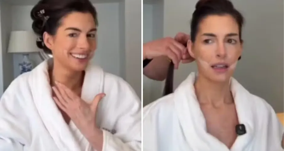 A atriz Anne Hathaway compartilhou nas redes sociais detalhes de sua preparação para o Oscar 2026 e revelou um truque para criar efeito de "facelift" sem cirurgia. Em vídeo gravado nos bastidores, ela aparece enquanto faz cabelo e maquiagem e explica como conseguiu o visual com aparência mais "esticada" no rosto.