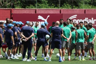 Zubeldía conversa com os jogadores durante o treino nas Laranjeiras
