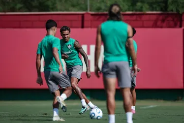 Jogadores do Fluminense treinam para o jogo de hoje fora de casa