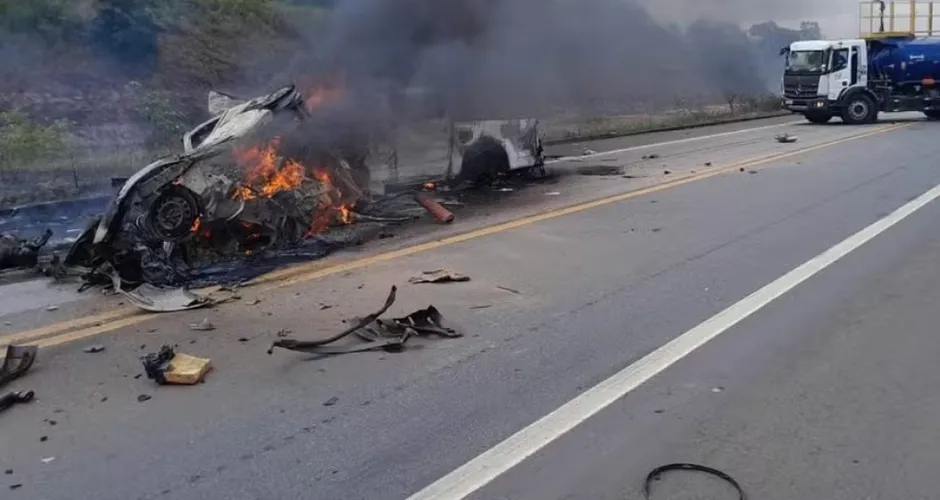 A inda segundo a PRF, os veículos pegaram fogo após o acidente e a pista precisou ser interditada.