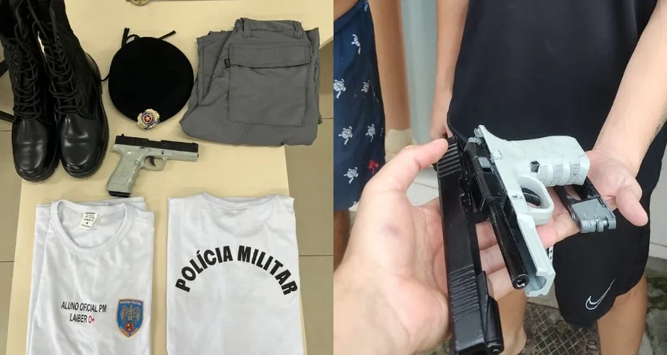 “O investigado publicava fotos e vídeos ostentando uniformes e insígnias da corporação, buscando aparentar vínculo com a instituição militar. Após diligências, foram apreendidos duas camisas de aluno da PMES, um coturno, uma calça tática, uma boina com o brasão da PMES e um simulacro de arma de fogo”, informou o delegado adjunto da 9ª Delegacia Regional de Itapemirim, Daniel de Araújo.