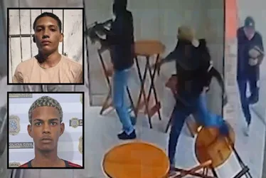 Imagens da câmera de segurança registraram o momento em que tudo aconteceu. O local estava movimentado e uma das clientes chegou a ser atingida pelos disparos, ficando ferida na região do tórax e no abdômen.
